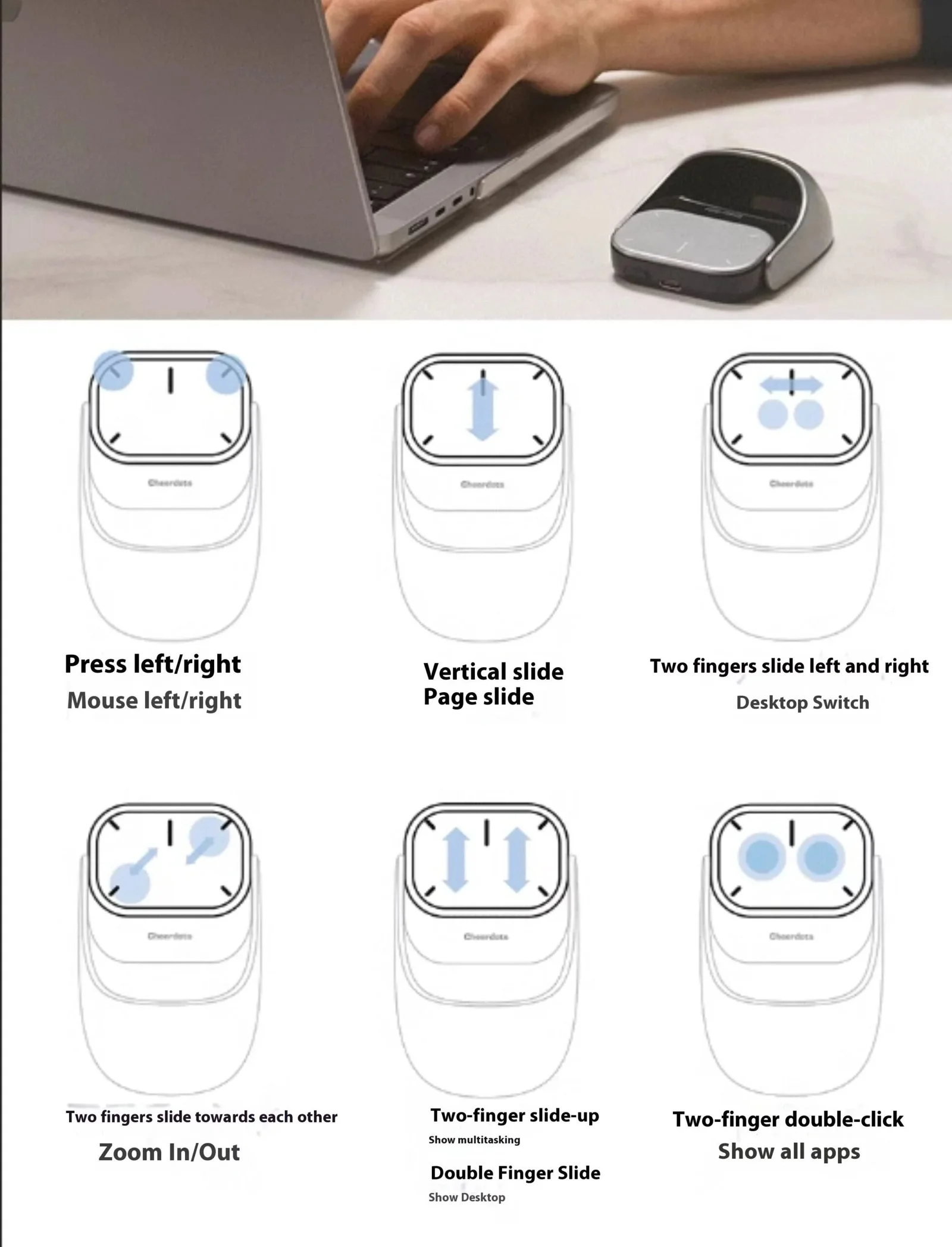 Unique Multifunctional Detachable Air Mouse, Cheerdots2 Air Mouse comes with a stylish magnetic detachable design. It’s an air mouse, wireless touchpad, presentation clicker, and recording pen all in one. Its upgraded ergonomic shape fits your hand perfectly and responds to natural hand movements. Weighing only 70g, you can carry it around in your pocket for on-the-go use.